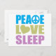 Peace Kärlek Sömn... Vad mer behöver du i livet? Perfektens gåva till alla sömnmissbrukare. Det spelar ingen roll om du sover tolv timmar om natten, går in i din pyjamas så fort du kommer hem för arbete och börjar räkna ner timmarna tills sängdags, du har den lyxigaste duven, lakan, komforter och kuddar, och du kan komplementera flanpyjamas för att försäkra dig om söta drömmar medan du sover, du är värd för det mest fantastisk slumber party och sömner, eller så kan du sova dygnet. Tills någon äntligen kommer och vaknar upp... är du beroende att sova! Lustigt presentkort för vilken sömn som helst älskare. Underbar för en sömndiva. Design har ett hjärta och ett fredstecken. Se vår butik för mer roligt och unika fredliga Kärlek... skjortor och gåvor.