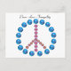 Bild av en fredssymbol, som visas på ett vykort, med orden "Fred - Kärlek - Försiktighet".