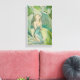 En underbar illustrativ vattenfärg och bläck-pennmålning för ängel älskare. En kvinnlig ängel med långa hårknän på marken och frigör duvor. Hon är klädd i en lång, lång kalkbit, bohemisk, hippiskklädd klänning och har en uppsliten sida vid sida. Hennes turkos vingar öppnas något och hennes arm lyfts upp lite med öppet händer. Hon ser upp med ett ljust och optimistiskt ansiktsuttryck, eftersom tre vita duvor ovanför henne flyger iväg.Bakgrunden är skuggor vår grönt och gult grönt