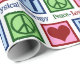 Akut fysisk terapeut som är papper för julklappar med fredstecken, hjärta och PT. Fredspressen Kärlek Physical Therapy-presenten.
