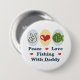 Den fredsymbolet, hjärta och fisken på bebis-, spädbarn- och ungedräkt, att bekläda, brevpapper och mer fisketema merchandise som gör en gullig gåva för barnet av en avid fiskare. En fridluftsmänniskafar är säker att älska till att se hans son eller dotter som ha på sig denna gulliga fredkärlek som fiskar med pappadesign.