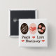 Fredsymbolet, hjärta och blandade receptpills i rosor och mörk bryner på gulligt, och höftapotekt-skjortor, dräkt och mer gåvor för en pharmacist, den PharmD professorn, apotek skolar studenten eller akademiker, apotektech, cpht eller rph.