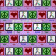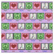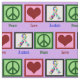 Nätt purpurfärgat tyg med fredssymboler, hjärtor och detfärgade autismmedvetenhetbandet för autistic folk som faller på spectrumen.