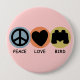 Tre cirklar föreställer fred, kärlek och fågeln (verben). En hjärta, ett fredsymbol och en para av kikaresminket denna roliga design för fågelskådare. Du kan totalt skräddarsy denna gåva! Tillfoga text, ändra färgen, flyttning designen omkring, välj en olik stil - gör det ditt eget!