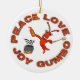 Fira jul med den riktiga Louisiana anstrykningen med dessa original- julprydnadar. Prydnadarna presenterar en Gumbomatlagningkräftor som omringas av slogan "fred, kärlek, glädje, Gumbo" på en sida. Bläddra prydnaden för att finna ett guld- Fleur de Lis symbol på en röd bakgrund för jul. Besöka www.zazzle.com/enchantedbayou* i dag för alla dina Cajun, Louisiana och New Orleans themed kort, inbjudningar och gåvor!
