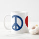 Fred, kärlek, varmkorv med en fredstecken, röd hjärta och en wienerkorv med senap.