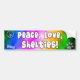 Den färgrika fred-, kärlek- och Shelties bildekalet står egentligen ut på din bil. Våra hund älskareklistermärkear har en regnbågetie-färg bakgrund med ben, tasstrycket, hjärta och fredsteckenet. Roligt och tänkt provocera påstående!