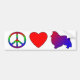 Spridning idén av fred och kärlek såväl som din gillande för aveln för Shetland Sheepdog med vår fred, kärlek och Sheltie bildekal. Fredsymbolet är en härlig regnbåge, är hjärtan röd, och hund aveln silhouette är rött blekna som slösar. Ett kraftigt påstående - på en stilfull produkt!