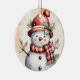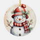 Fredlig jul, snögubbe, vattenfärg snögubbe julgransprydnad keramik