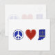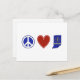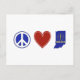 Med en stor blå fredstecken, ett rött hjärta och Indianas delstatsflagga i silhuettkartans form över staten är detta fredshjärtat Indiana vykort bra för att dela de fredliga och kärleksfulla Indianakänslorna med en kort handskriven notis.