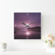 Fredlig Rosa/Plum Sunrise Landskap över Vatten Fyrkantig Klocka