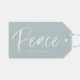 Lägg till en anpassningsbar till dina presentlådor i helgdag genom att lägga till våra märkre för fredliga vinterpresenter. Märkrna i anpassningsbarnas gåva innehåller "fred" i ord i ett vitt, handskrivet skript med ditt namn eller din anpassningsbar under mot en isblå bakgrund. Baksidan har en ljusblå och vit snöflinga mönster.