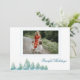 Fredlig Vinter Skog Vattenfärg Jul Foto Högtidskort. Vattenfärg ritning av träd på vintern, vinter skog med snö i blå och gröna färger. Designen är fredlig och lugn med en foto mall och text på framsidan och baksidan i elegant skrivstil. Anpassa texten och lägg till ditt foto.