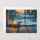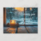 Fredlig vinterjul - dekoration i fönstret helg vykort