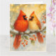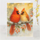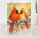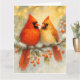 Fira årstidens värme med detta förtrollande julkort med två kardinaler som sitter på en snötäckt gren, omgivna av järnekslöv, röda bär och mjukt lysande slingor. Den lugna blandningen av gyllene och isiga nyanser frammanar en känsla av gemenskap, frid och julmagi. Perfekt för att skicka hjärtliga önskningar till nära och kära, ger denna naturinspirerade design festlig charm och tyst elegans till din julkorrespondens.