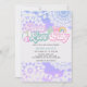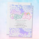 Fredlighet Kärlek Bebis Inbjudan till bebisfest med pastellfärgad tie dye-mönster i nyanser av lila och blått. Designen har groovy retro-bokstäver och 70-talsstil med hjärtan blommor regnbågar och fredstecken. Lätt att anpassa och mångsidig för att passa alla möjliga teman som tie dye-fest, 60- eller 70-tals tema, poolparty osv.