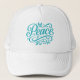 Denna truckerkeps för fredsfrämjande insatser har ord "Peace" i ett vackert skript omgivet av snabba blommigtar, utstråla lugn, hopp och tyst styrka.