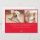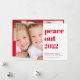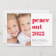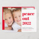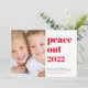 Ett plattkort för coola God jul och Gott nytt år helgdag. På framsidan kan du anpassa ett lodrät-foto bredvid "Peace Out" skrivet i modern röd typografi och hälsning (till att börja med inställt på God jul och Cheers till ett nytt år). På motsatt sida lägger du till två bilder och en annan hälsning i vit text mot en säsong röd bakgrund.