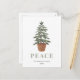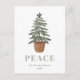 Detta enkla vykort för helgdag har en vattenfärg som illustrerar ett evergreen träd i en basket-planter. Ord "PEACE" visas i stort, sage grönt serif brev som koordinerar med konsten. Lägg till familjens namn och året i grått italics med kol och returadressen på baksidan