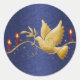 Anpassningsbar för julens helgdagar, veteranska minnesdagar och kristna evenemang. Ändra färg i bakgrunden och lägg till text så att den blir unik. Det här klistermärket har en bild av en fredsduva i guld som flyger med vingar uppåt och bär en gren i sin smäll. Det flyger över en känslig, ornerad vågrät i guld som har ett litet snöflingor som faller runt det och tre röda ljus som brinner på ett briljant sätt. IDEAL FÖR: Julinbjudan, kristna helgdag och evenemang samt fredsmäklare och konserter. ANPASSA IT: Du kan gärna ändra färg i bakgrunden, lägga till text och foton eller företagets logotyp och göra om bilden till storlek, placera om eller byta ut den mot en av dina egna. MATCHING PRODUCTS: Om du vill visa varusortimentet i den här fullt går du till vår hemsida och väljer kategorierna "Större Helgdagar", "Julsäsong". STORE ADRESS: http:// www.zazzle.com/mensgifts* COPYRIGHT: Robin Wood - mensgifts.