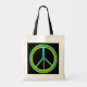 Den här väskan har det cirkulära mönster i fredssymbolen internationell. Färgen blått, grönt och gult på en svart bakgrund skapar en dramatisk geometrisk abstrakt mönster.