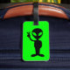 Den här lilla utomjordingen kommer för att besöka i fred. En ljus grönt som säkert kommer att fånga den vanlige resenärens uppmärksamhet när den kommer på bagagekarusellen.