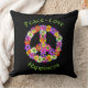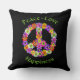 Dekorativ kudde har ett fredstecken för blommigt i nyanser av rosa, gult, orange, lila, grönt, vitt och svart. Finns i olika storlekar och tyger.