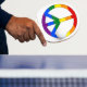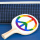 Främja fred och pride samtidigt med denna roligt med gay pride-fredsteckenets regnbågssymbol som pingpongpaddel med vit bakgrund och rödgummibaksida.