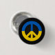 Rundknapp med fredssymbol i färg i det ukrainska flagga mot svart bakgrund