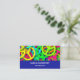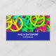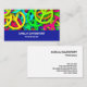 Affärskort med sextiotalet vibe. Coola fredstecken i ljust och vibrerande nära färg med alla färg i regnbågen.