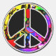 Ett fredstecken med en ljusare färgad, en universell fredssymbol, med en svart bakgrund.