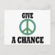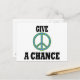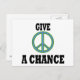 Blått och grönt fredstecken med orden, ge fred en chans.
