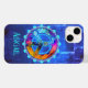 Ett färglöst fredstecken med flytande ljusa färger ämnen, inklusive akvblått, midnatt, rosa, orange och lila. Den fantastiska explosionen av färg går mot en Azure-blå bakgrund. Den glödande bakgrunden har ett beklämmande utseende, med ljusstrålar genom. Lägg enkelt till ditt namn eller initialer i coolans moderna telefonväska.
