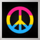 Poster med fredssymboldesign i färg av flagga för pride av pansexualitet; pride av rosa, gult och blått rand mot svart bakgrund