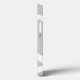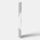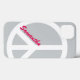 En silver färgad fodral med ett stort vitt fredstecken och ett eget namn i stark rosa.