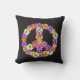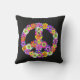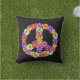 Ett fredstecken i blommigt i skuggor av rosa, gult, orange, lila, grönt, vitt och svart utgör kärnpunkten på denna boho-chic dekorativ kudde.