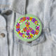 Ett fredstecken för blommigt i skuggor av rosa, gult, orange, lila, grönt, vitt och svart.