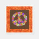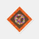 Denna pappra napkin flödar ett blommigt fredstecken i nyanser av rosa, turkos, gult, orange, lila, grönt och svart. En abstrakt i skuggor av orange ger ram.