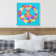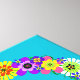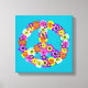Ett fredstecken för blommigt i skuggor av rosa, gult, orange, lila, grönt, vitt och svart.