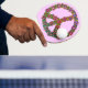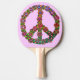 Ett fredstecken-/fredssymbol som pingpongpaddel med slidfärgad färg och ljusa färgader blommor över det. En färgstark design för stolta hippies/älskare av världsfreden. Rosans bakgrund färg är anpassade.