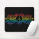 Regnbågen färgade blommiga fredsteckenet på en svart bakgrundsmus vadderar.