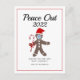 Skicka lite humor med det här fredsuppehåll 2021-Helgdag. Den här moderna, enkla designen har en söt pepparkaksgubbe med en Covid ansikte-mask på mitten av den vita bakgrunden och han håller candy cane och bär en röd julhatt. Hälsning är "Peace Out 2021" i skriptbokstäver. Ett anpassade kort hälsning ligger längst ned. Personlig med familjens efternamn. Klicka på alternativet Anpassa mall och följ uppmaningen.