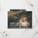 Lustigt bröllop spara datum med citatet fri kummel, öppna Pub och Bröllop på sidan. Det innehåller ditt foto (fram och tillbaka) och fet chic serif-teckensnitt i kombination med ett avslappnad-penselskript.