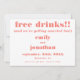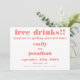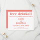 En humoristisk formgivning med fet typografi för dina gäster till sparan av din bröllop-dejt. Helt anpassade. Den centrerade texten är i koral, med huvudet, gratis dryck följt av tagline, och vi är också Gifta sig, namn, datum och plats för bröllop. En passande korallbakgrund finns på baksidan som du kan byta till ett annat färg om du vill med alternativet Anpassa ytterligare.
