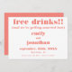 En humoristisk formgivning med fet typografi för dina gäster till sparan av din bröllop-dejt. Helt anpassade. Den centrerade texten är i koral, med huvudet, gratis dryck följt av tagline, och vi är också Gifta sig, namn, datum och plats för bröllop. En passande korallbakgrund finns på baksidan som du kan byta till ett annat färg om du vill med alternativet Anpassa ytterligare.