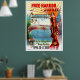 A vintage affisch annonserar Free harbor jubilee, Los Angeles och San Pedro, Kalifornien den 26 april och 27 april 1899. En kvinna i en smyckad klänning håller den amerikanska flagga och ljud en trumpet. I bakgrunden släpper cupider blommor blommar över en detaljerad flygvy över San Pedro, hamnen i Los Angeles och Free Harbor i Kalifornien. Järnväg linjer förbinder Los Angeles och bukten. Från en originallitografi från 1800-talet (1899) av J.F. Derby. Alla Höger reserverade © 2013 Padre art.