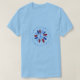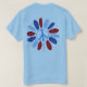 Frihet, fred, frihet och själ omger en patriotisk fredssymbol som också är en blomma. Det finns en komplementtryckt text på baksidan av t-shirt.