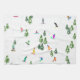 Coola vismliknande illustration av färgstarka snödränder, snöbäddning nedför berg mellan gräs, grisen, träd på färskt snö-pulver. Snowboard och julafton utomhussport i en vinterskog. Snowboarder-gåvor. Snowboarding-juldekoration.