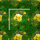 Abstrakt konst av briljant orange Freesia och ljust - grön lövverk med ett stänk eller två av vallmon.
