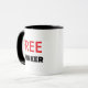 Custom freethinker quote mug with personalized text, white ceramic inspirational cup.